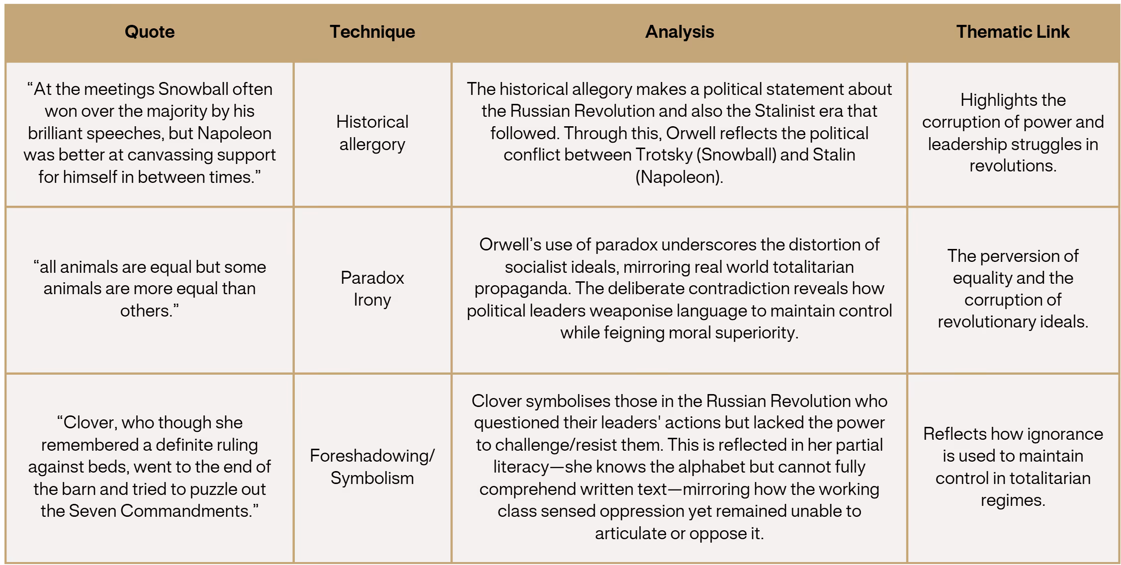 📌 Key Tip: Always ask yourself: What technique is being used? What is Orwell critiquing? Why is this significant in a broader context?